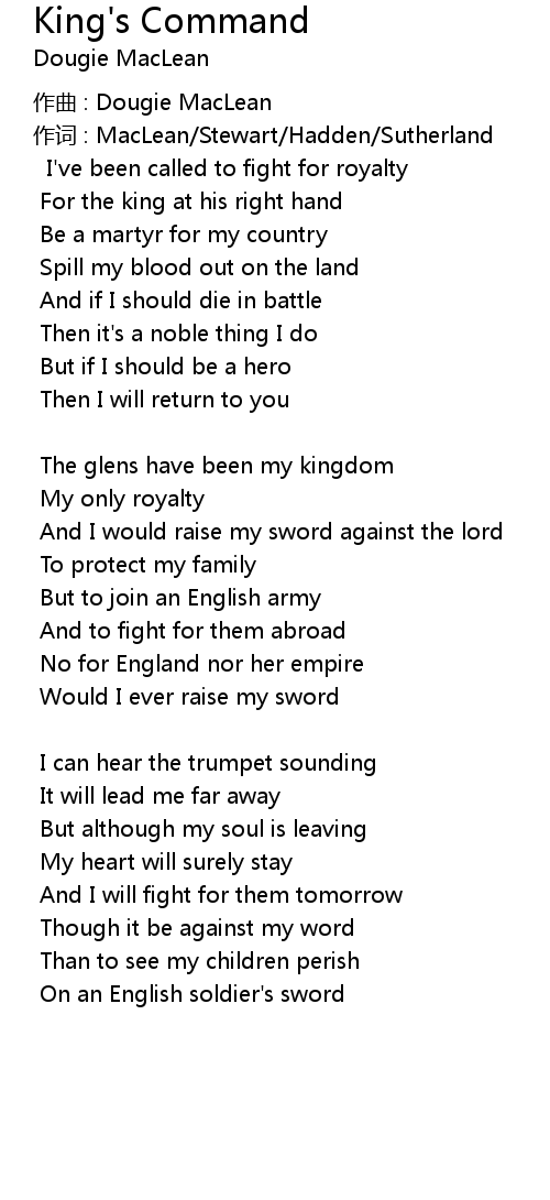 | 作词 : MacLean/Stewart/Hadden/Sutherland | |