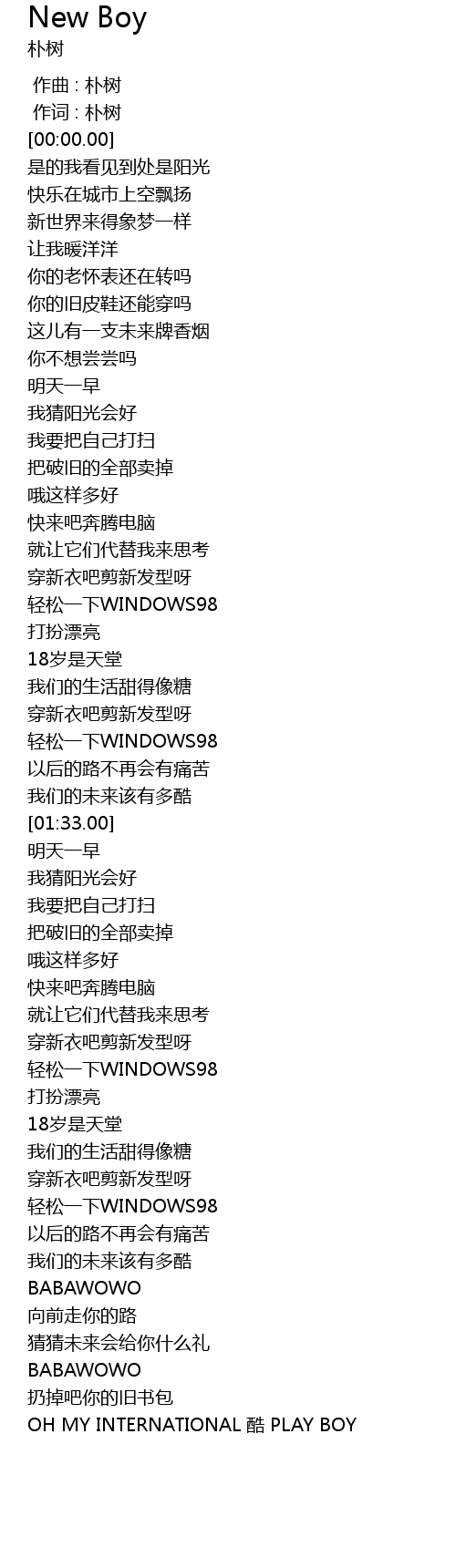 | [00:00.00] | 作曲 : 朴树 |