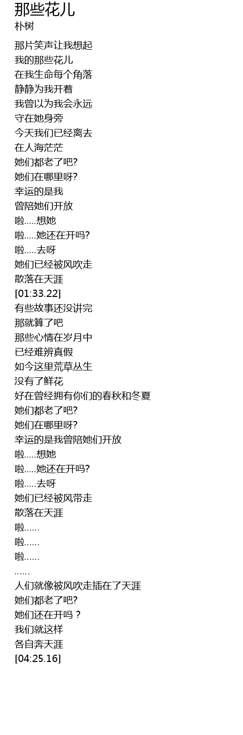 | [00:20.72] | wǒ de nèi xiē huā ér |