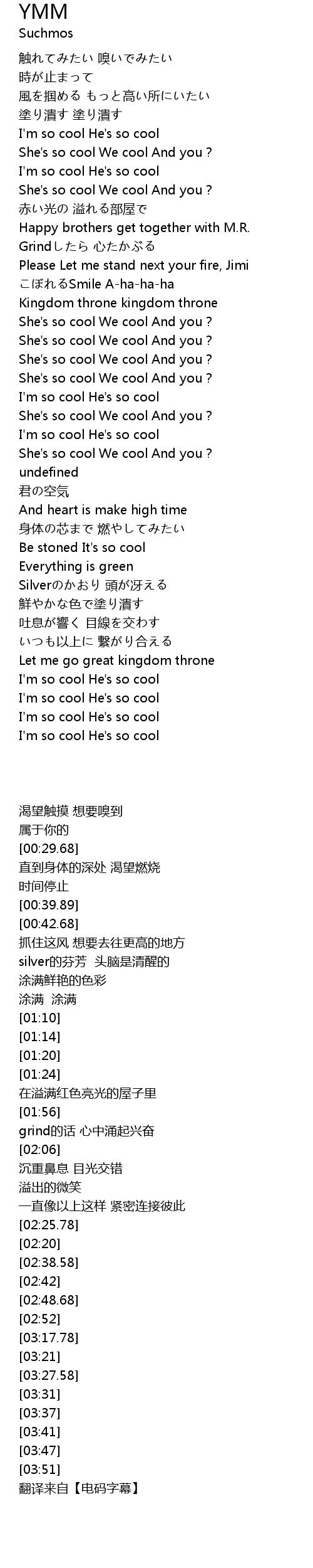 | [03:27.58] | I'm so cool He's so cool |