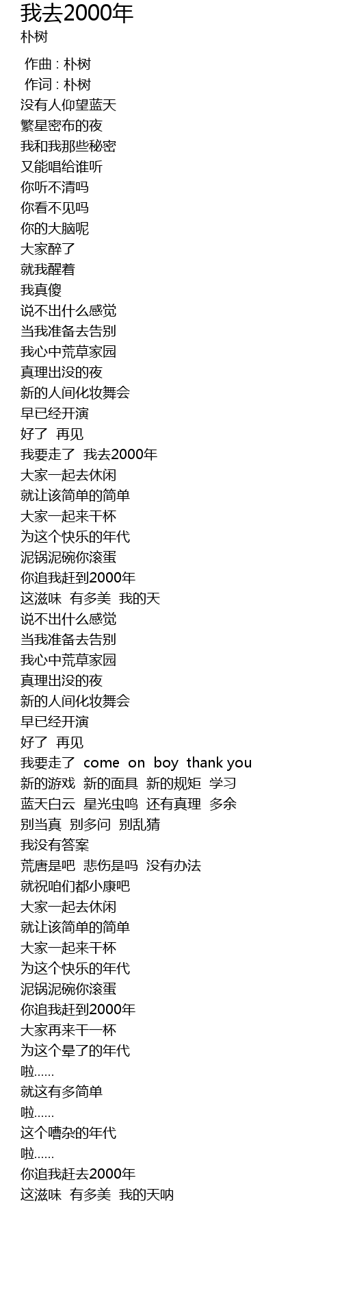 | [00:01.00] | 作词 : 朴树 |
