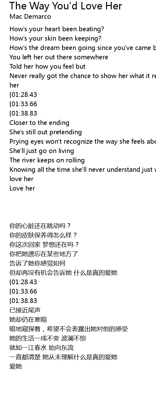 [02:10.45][01:28.43][00:46.85] The way you'd love her