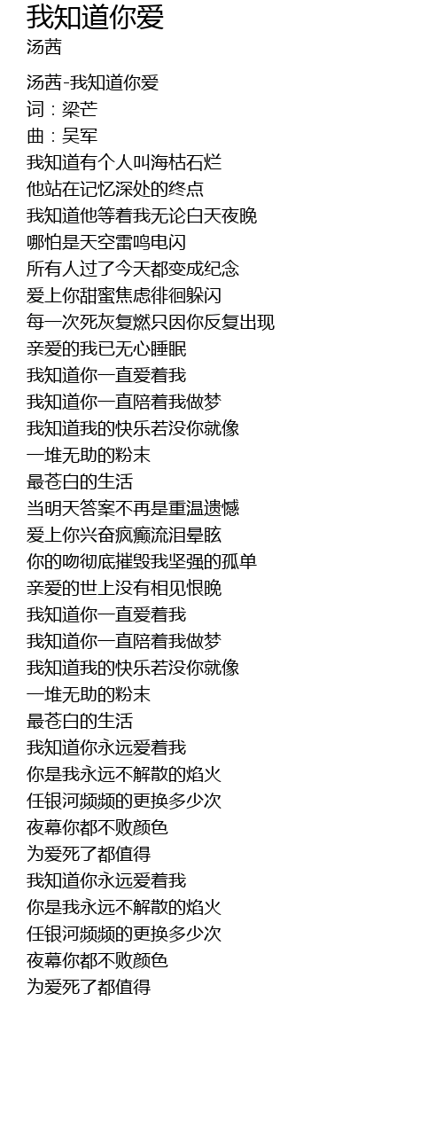 | [00:00.422] | tāng qiàn wǒ zhī dào nǐ ài |