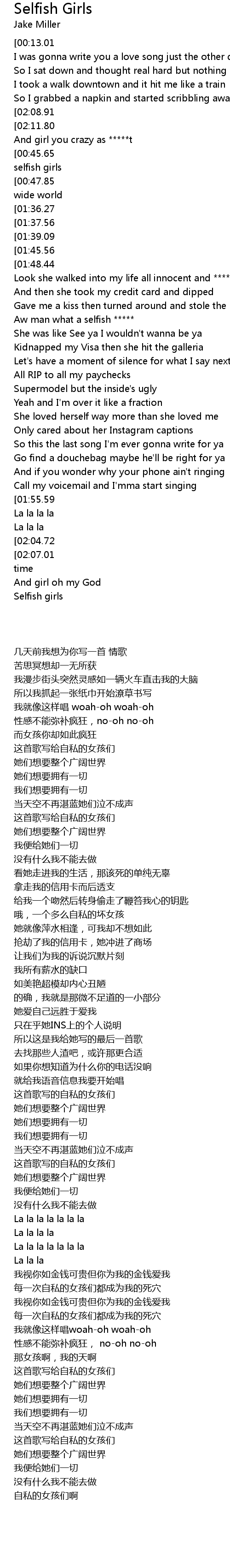 This song's for selfish girls |