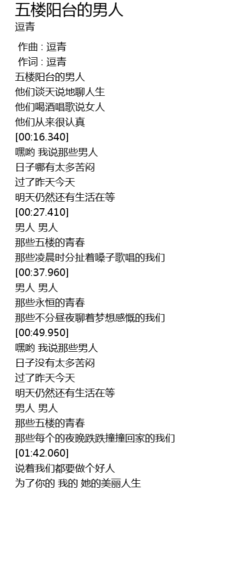 | [00:04.710] | wǔ lóu yáng tái de nán rén |