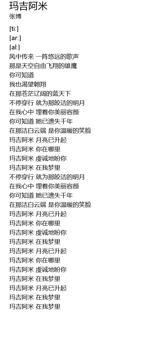 | [03:38.20] | 玛吉阿米 你在哪里 |