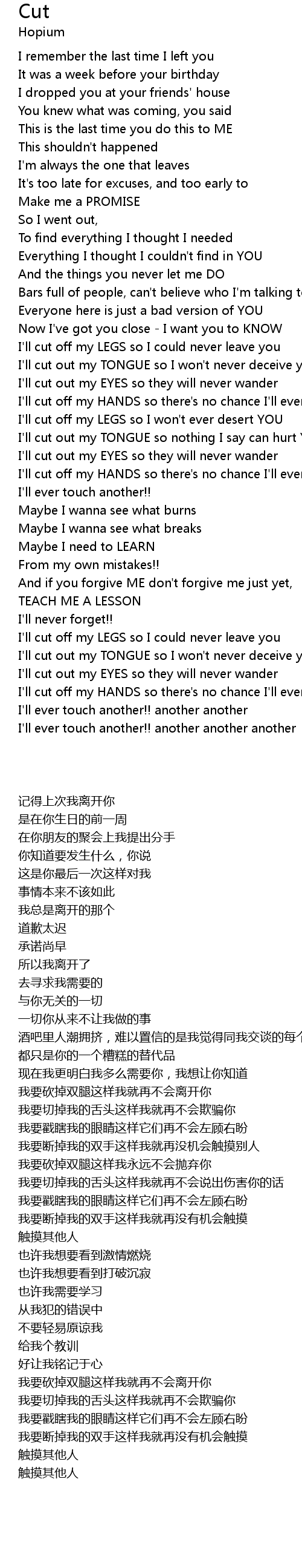 | [03:10.82] | I'll cut off my HANDS so there's no chance I'll ever touch |