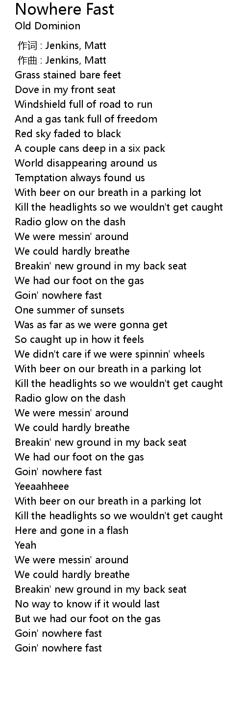 | [01:56.79] | Goin' nowhere fast |
