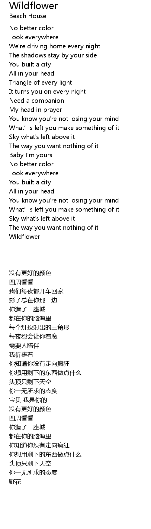 | Song | Wildflower |