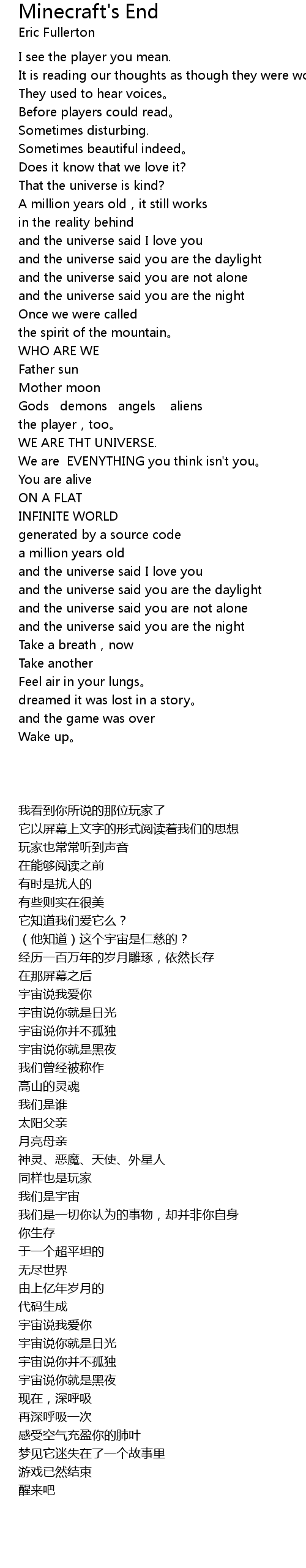 | Song | Minecraft's End |
