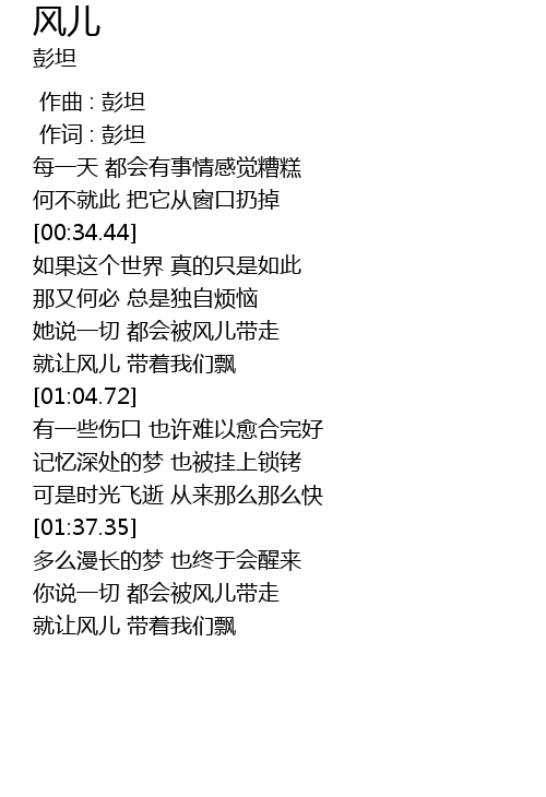 | [00:00.00] | zuò qǔ : péng tǎn |