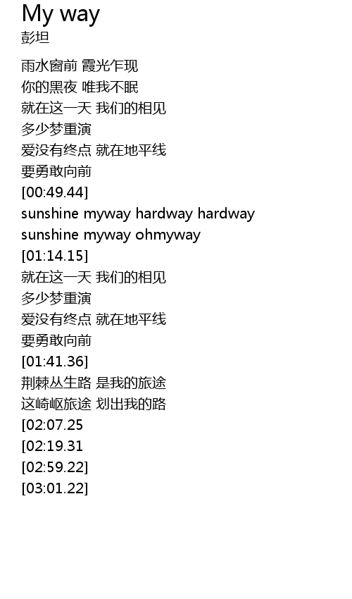 | [02:31.65][02:07.25] | sunshine myway hardway hardway |