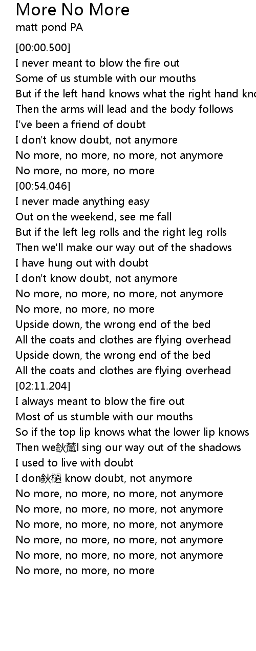 | [00:49.982] | No more, no more, no more |