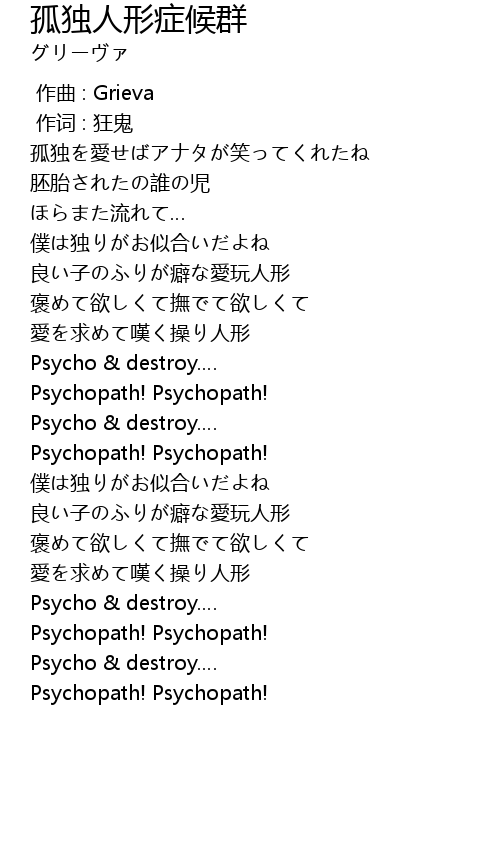 | [00:37.50] | 良い子のふりが癖な愛玩人形 |