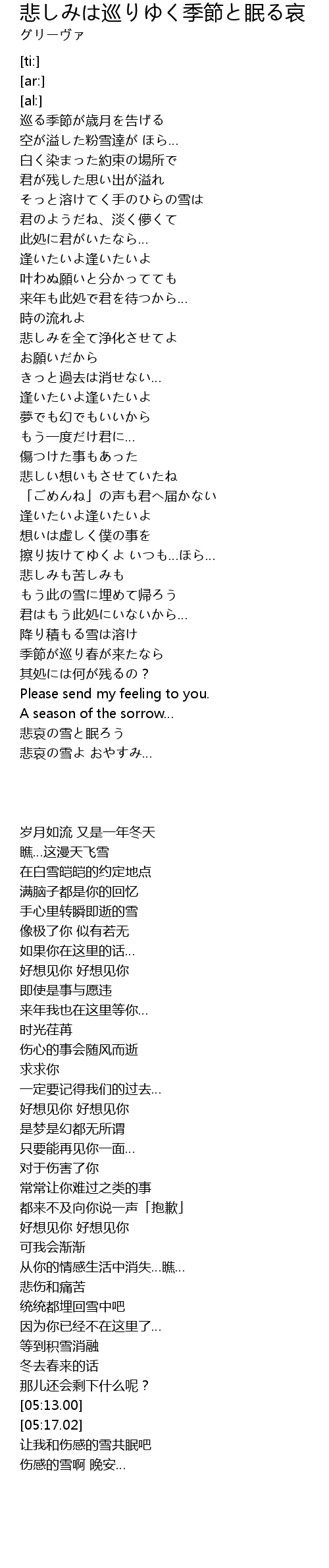 | [05:57.83] | 悲哀の雪よ おやすみ… |