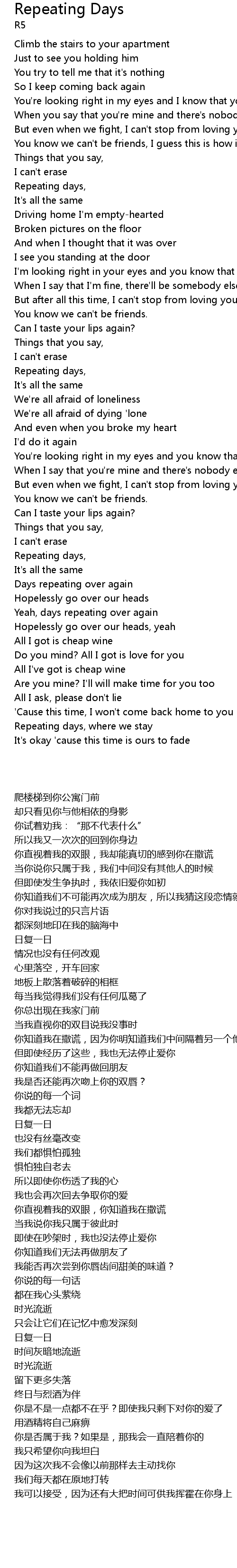 Repeating days, where we stay |