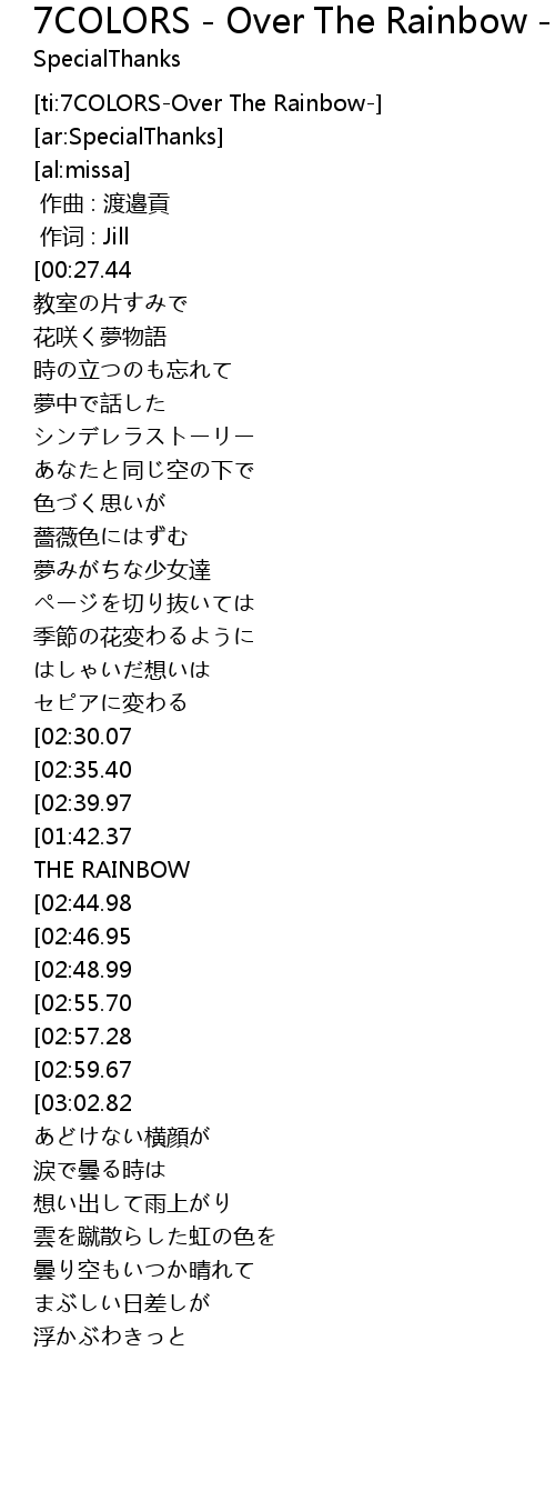 | [01:47.59][02:59.67][03:47.60] | 虹の橋を飛び越えて |