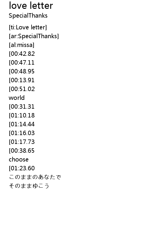 | [00:09.07][00:51.02][01:33.25][02:23.13] | 8000 love letters came from all over the world |