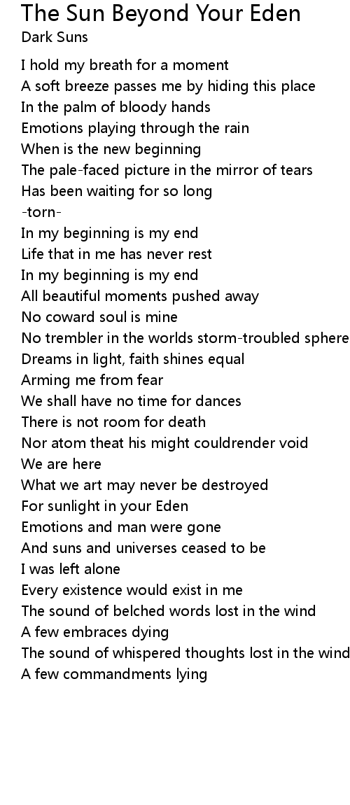 | For sunlight in your Eden | |
