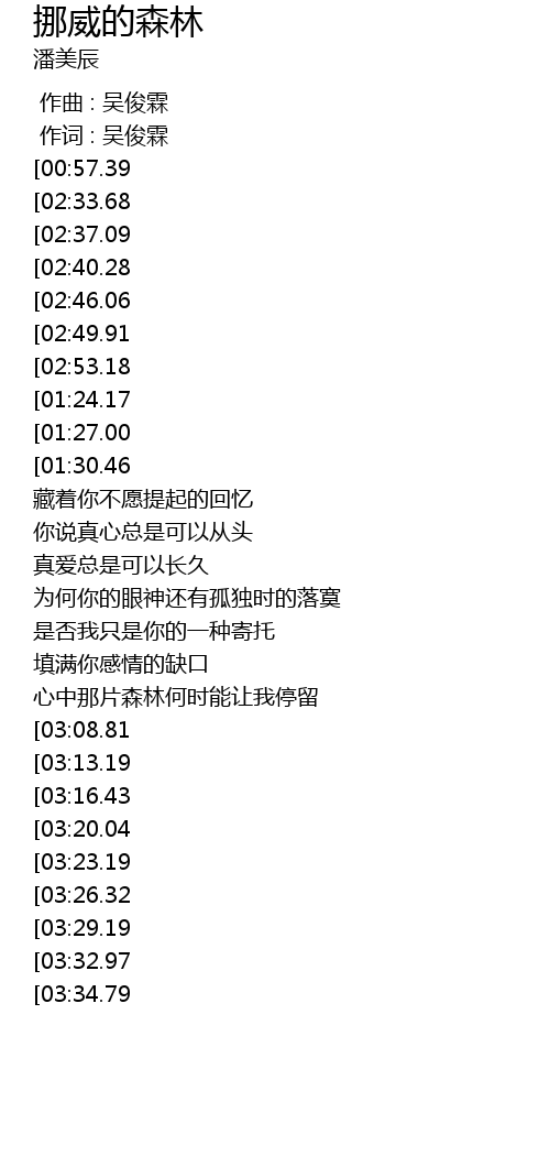 | [01:18.14] | 心中那片森林何时能让我停留 |