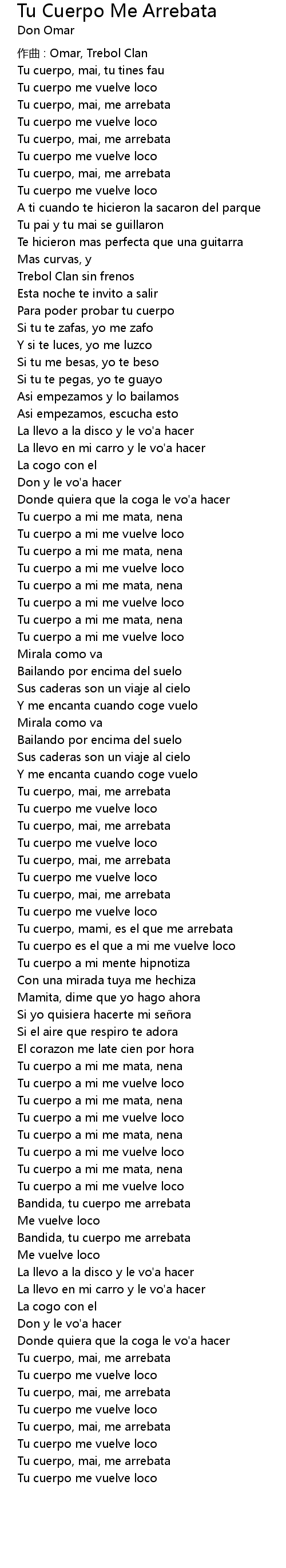 | Tu cuerpo a mi me vuelve loco | |