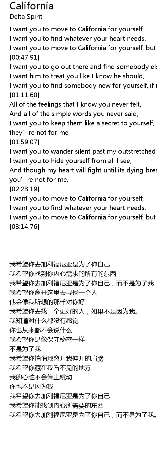 | [00:40.81] | I want you to move to California for yourself, but not for me. |