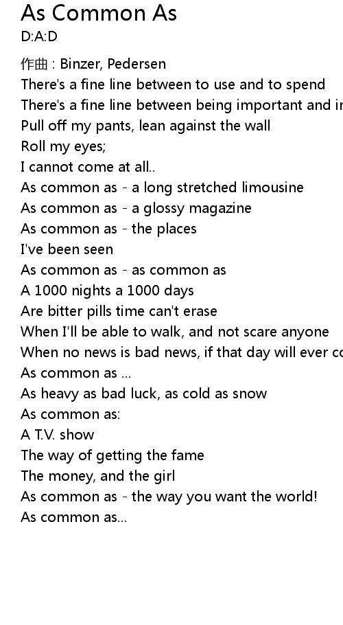 | Song | As Common As |