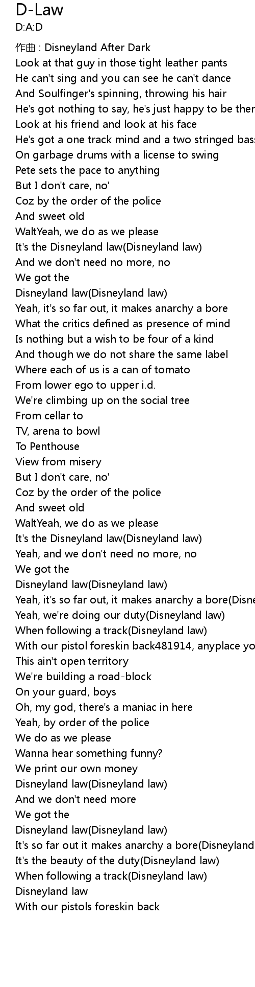 | It' s so far out it makes anarchy a bore Disneyland law | |