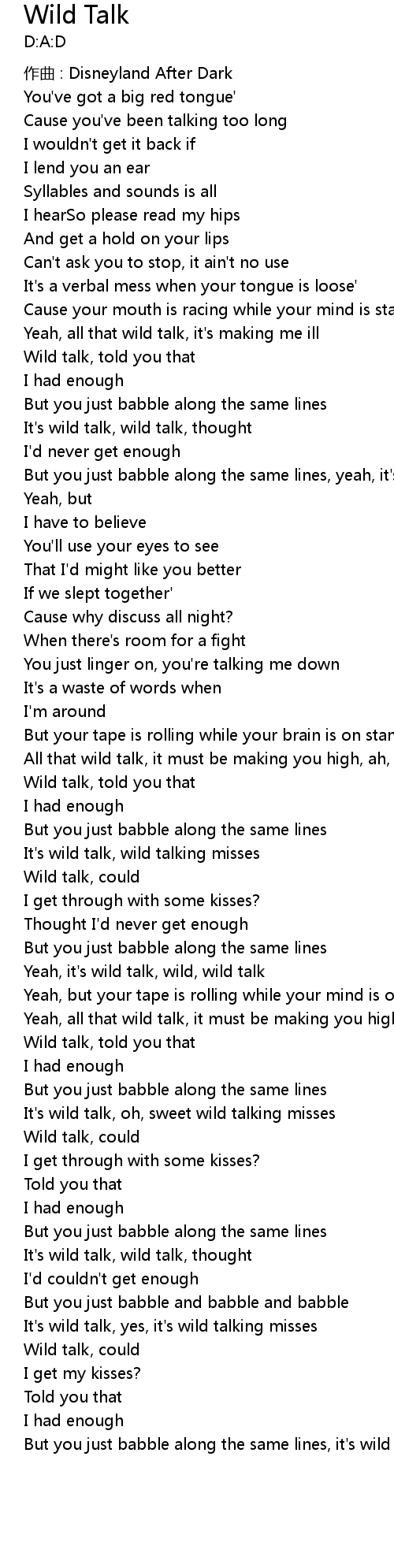 | But you just babble along the same lines, yeah, it' s wild talk | |