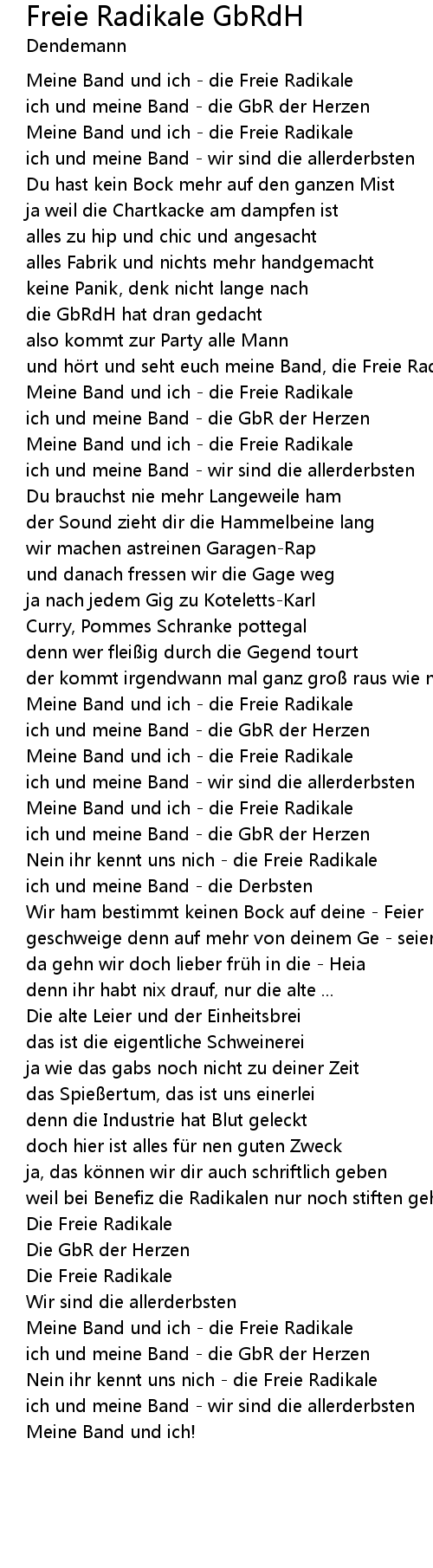 | und h rt und seht euch meine Band, die Freie Radikale an | |
