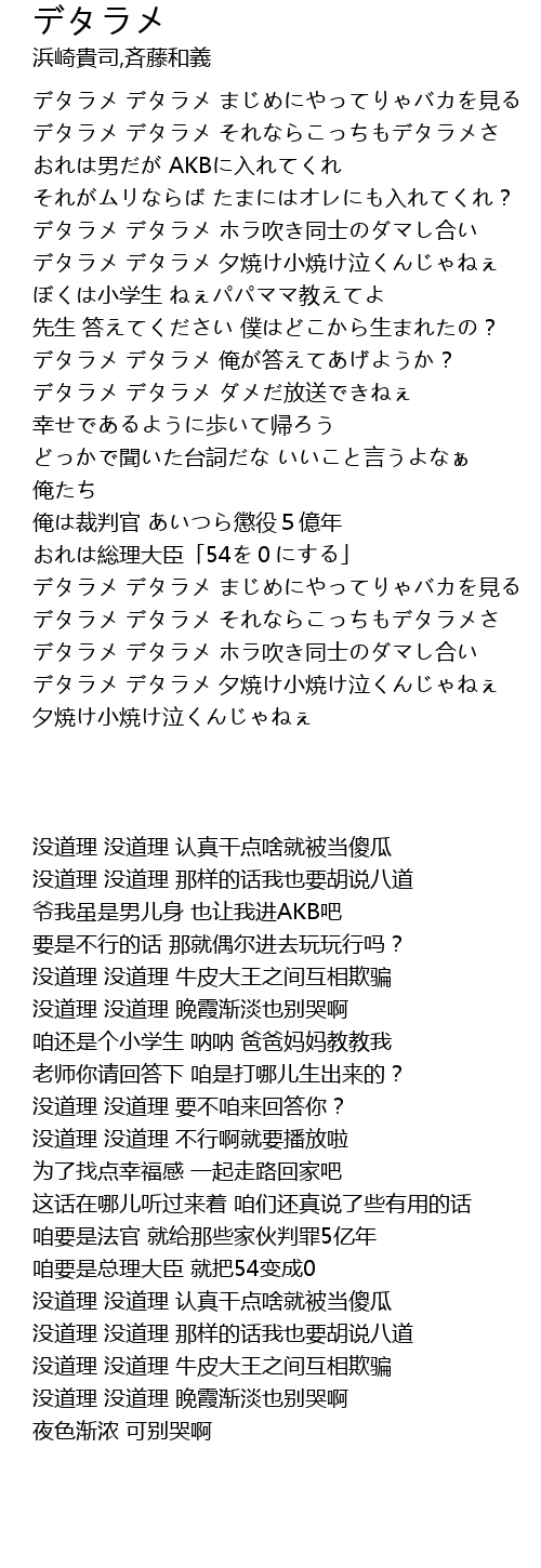 | [00:52.720] | デタラメ デタラメ 夕焼け小焼け泣くんじゃねぇ |