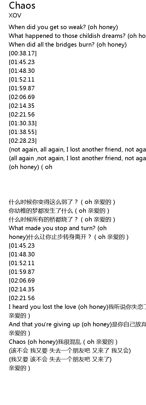 | [00:17.60] | When did you get so weak? oh honey |