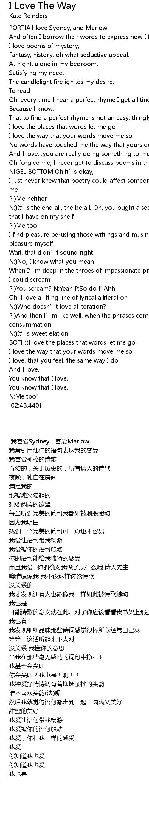 | [02:06.820] | BOTH:)I love the places that words let me go, |