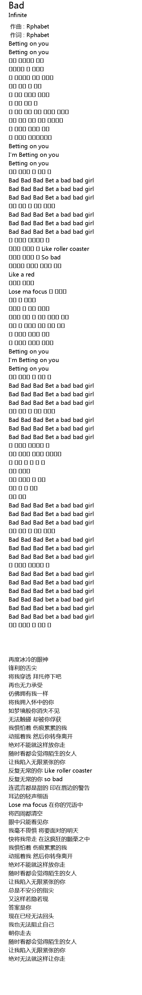 | [02:14.150] | Bad Bad Bad Bet a bad bad girl |
