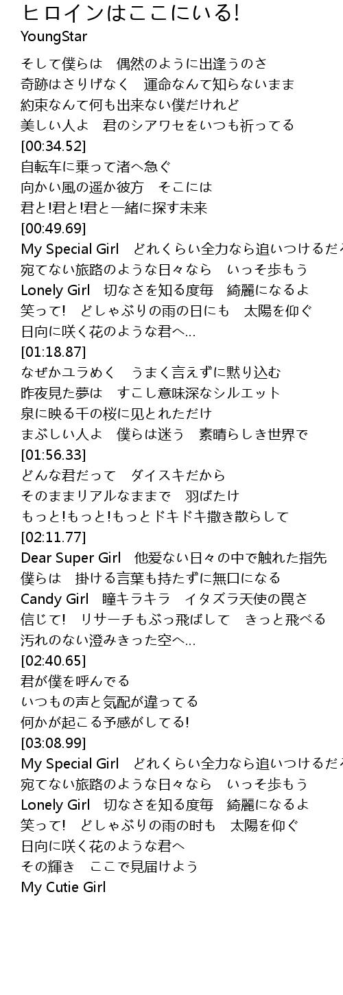 | [00:50.34] | My Special Girl どれくらい全力なら追いつけるだろう |
