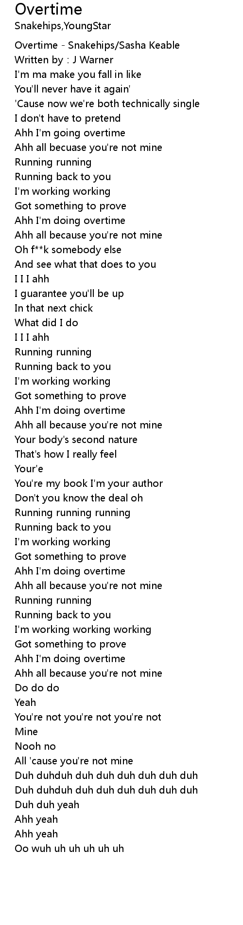 | [00:00.00] | Overtime - Snakehips/Sasha Keable |