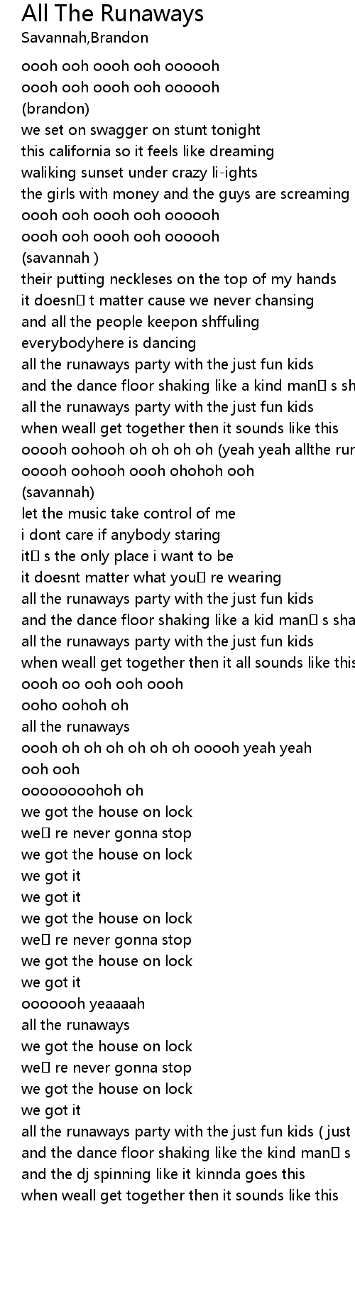 | [02:50.97] | all the runaways party with the just fun kids ( just fun kids ) |
