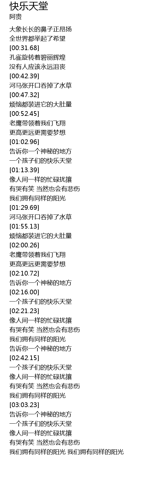 | [02:42.72] | 一个孩子们的快乐天堂 |