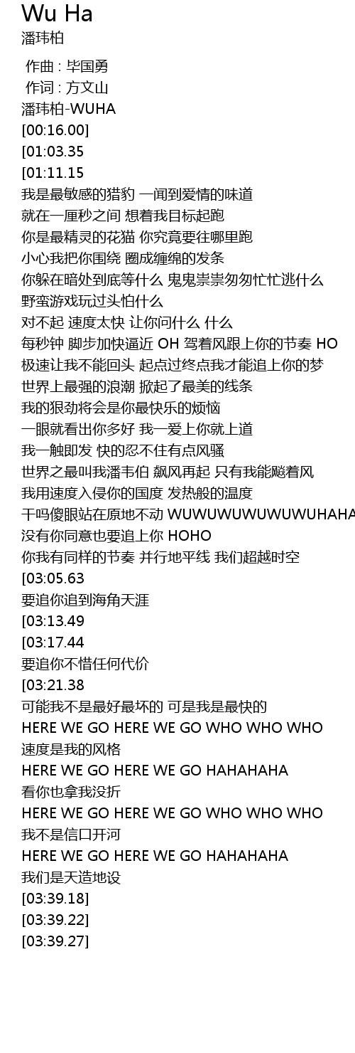 | [00:16.00] | 潘玮柏-WUHA |