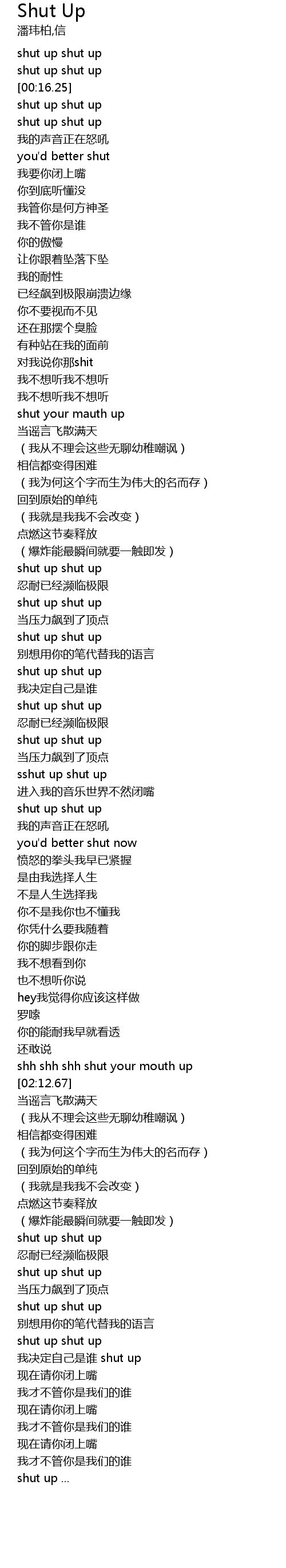 | [00:16.97] | shut up shut up |