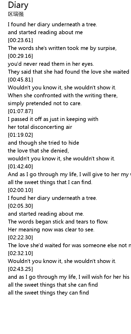 | [02:00.85] | I found her diary underneath a tree. |