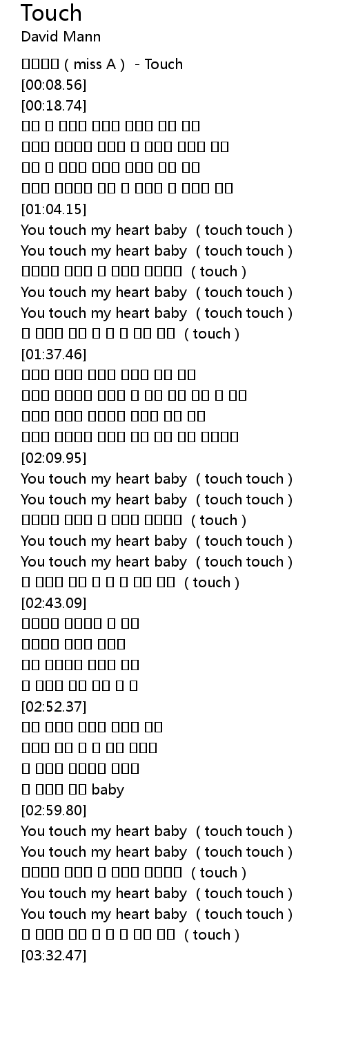 | [00:00.12] | 미쓰에이(miss A) - Touch |