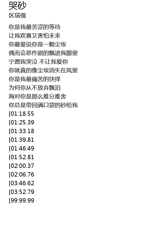 | [03:00.19][01:25.39] | 让那手中泻落的砂像泪水流 |