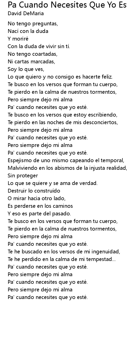 | Song | Pa Cuando Necesites Que Yo Esté |