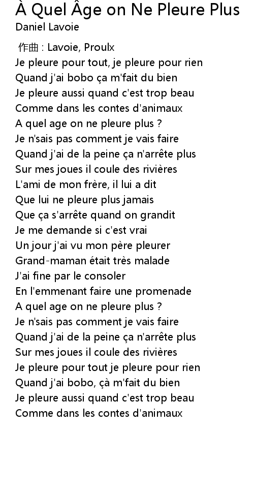 | [01:37.46] | A quel age on ne pleure plus ? |