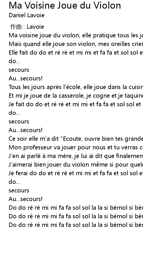 | [00:23.53] | Mais quand elle joue son violon, mes oreilles crient au secours |