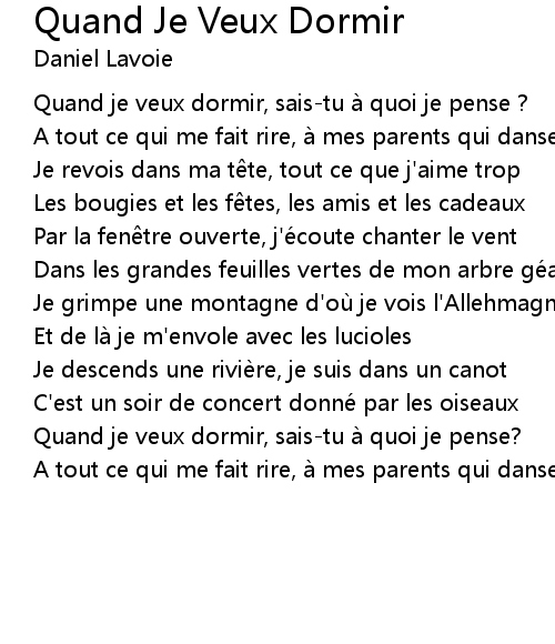 | [02:02.14] | Quand je veux dormir, saistu à quoi je pense? |