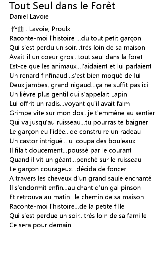 | [00:21.09] | Avait-il un coeur gros...tout seul dans la foret |