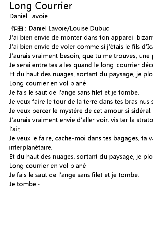 | [00:49.01] | Je serai entre tes ailes quand le long-courrier décolle |