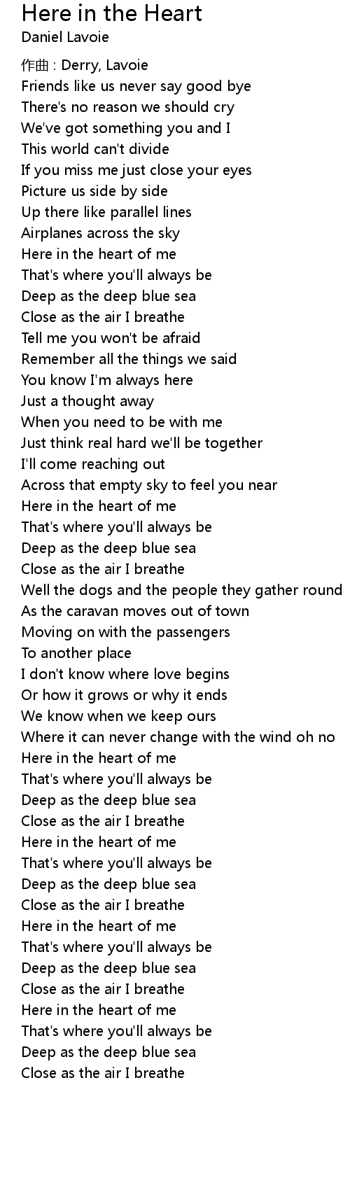 | Here in the heart of me | |
